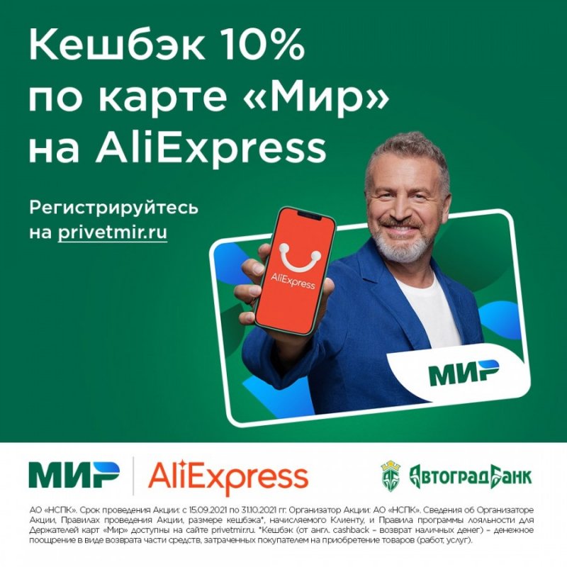 Грандиозная акция с AliExpress стартовала! Здесь вы найдёте всё и даже больше: одежда, аксессуары, гаджеты, товары для дома и многое другое теперь с кешбэком 10% по карте «Мир».