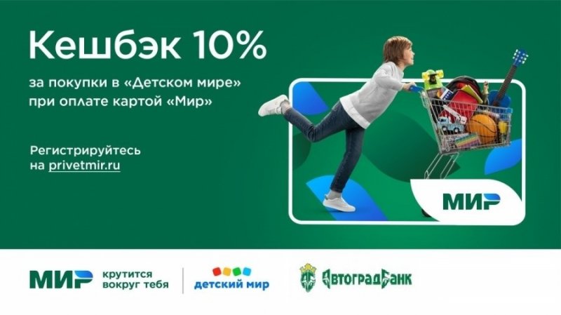 Возвращаем 10% за покупки в "Детском мире" картой МИР от Автоградбанка.