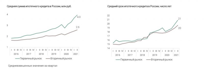 Рост цен на недвижимость привел к увеличению средней суммы и срока кредита. При более низких процентных ставках снижается сумма процентов, что ведет к сокращению ежемесячного платежа, и заемщик получает возможность взять кредит на большую сумму. Увеличение срока кредита позволяет снизить размер ежемесячного платежа, что актуально в условиях роста цен на недвижимость.