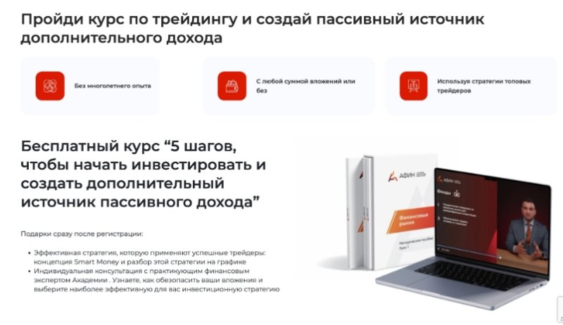 Добиться успеха в трейдинге без должного обучения практически невозможно. А ведь в это нужно инвестировать не только деньги, но и время. Поэтому если вы хотите научиться работать с финансовыми инструментами, но боитесь ошибиться с выбором компании или платформы, то обратите внимание на Бесплатный курс от АФИН (Академии финансовых инвестиций).