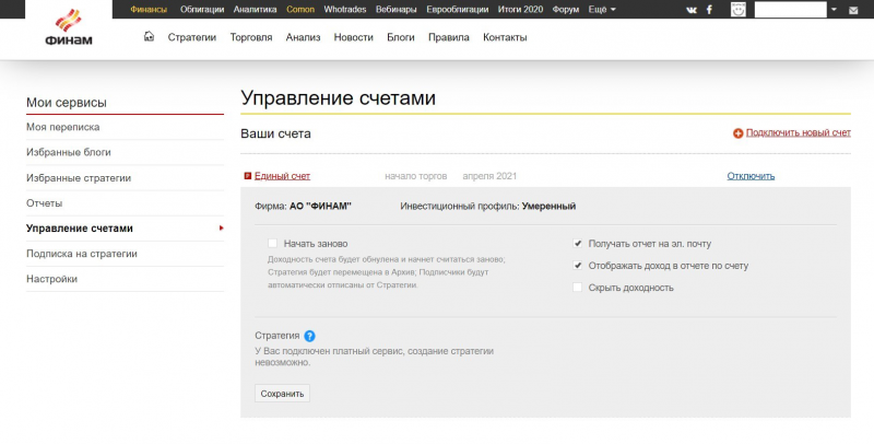 Я давно читаю telegram-каналы «Толкователь» и Proeconomics, лояльно отношусь к позиции их авторов, во многом она мне близка. Некоторое время назад в этих каналах стали публиковать отчеты о результатах вложения денег через одну из стратегий сервиса Comon от «Финама», которые показались мне заслуживающими внимания и доверия. Я решил тоже попробовать Comon.