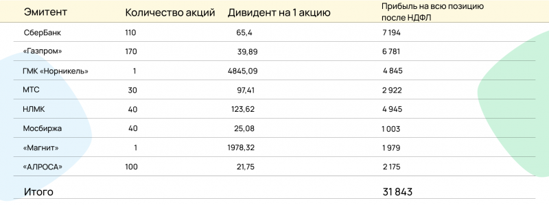 Прибыль от дивидендов я выводила на банковский счет, чтобы не усложнять эксперимент.