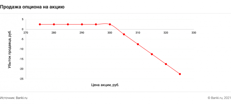 2. Вы продали опцион на покупку акций. Ваши потенциальные убытки: