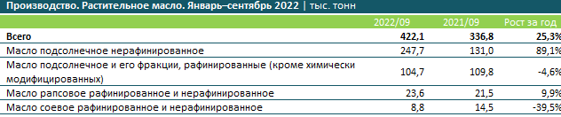 нерафинированное (247,7 тыс. тонн, на 89,1% больше, чем годом ранее) и