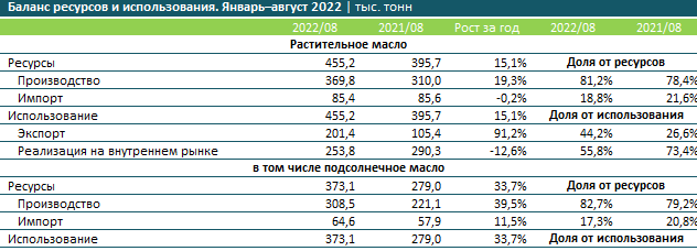 9,9% за год, до 23,6 тыс. тонн) и сафлоровое масло (плюс 2%, до 1,4 тыс.
