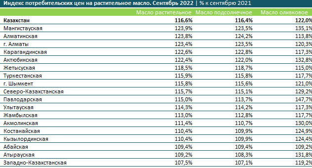 В сентябре текущего года цены на растительное масло выросли на 16,6%