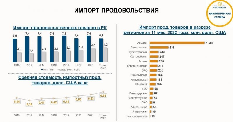 государственных доходов за 11 месяцев 2022 года Казахстан импортировал 6,8 млн