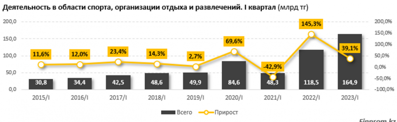 организации отдыха и развлечений составил 164,9 млрд тенге, на 39,1% больше
