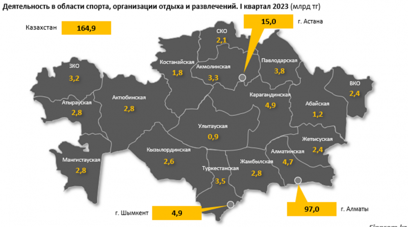 организации отдыха и развлечений пришелся на Алматы: 97 млрд тенге, на