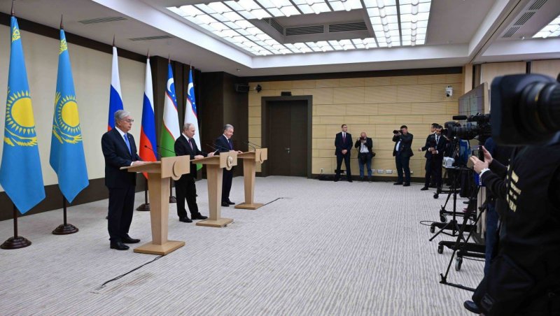 В завершение Касым-Жомарт Токаев поблагодарил Владимира Путина за личный вклад в продвижение важнейшего транснационального проекта, а также выразил признательность за всемерную поддержку Шавкату Мирзиёеву.