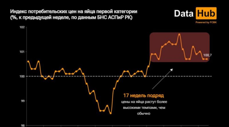 Цены на яйца растут сильнее обычного 17 недель подряд, сообщает Телеграм-канал Первого кредитного бюро DataHub.