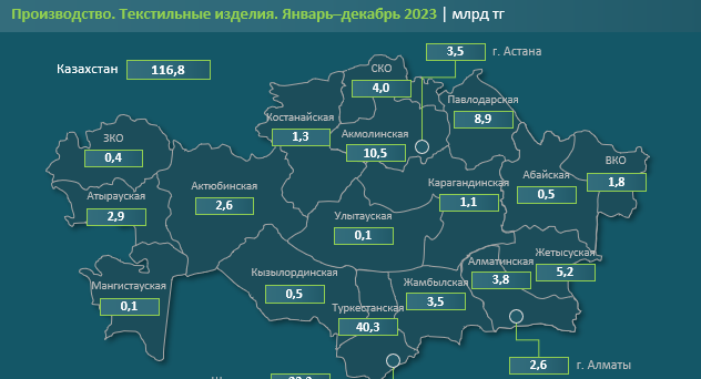 Производство текстильных изделий в РК за январь–декабрь 2023 года
