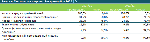 искусственный мех (лишь 0,9%). Ткани из кардочесаной и гребнечесаной
